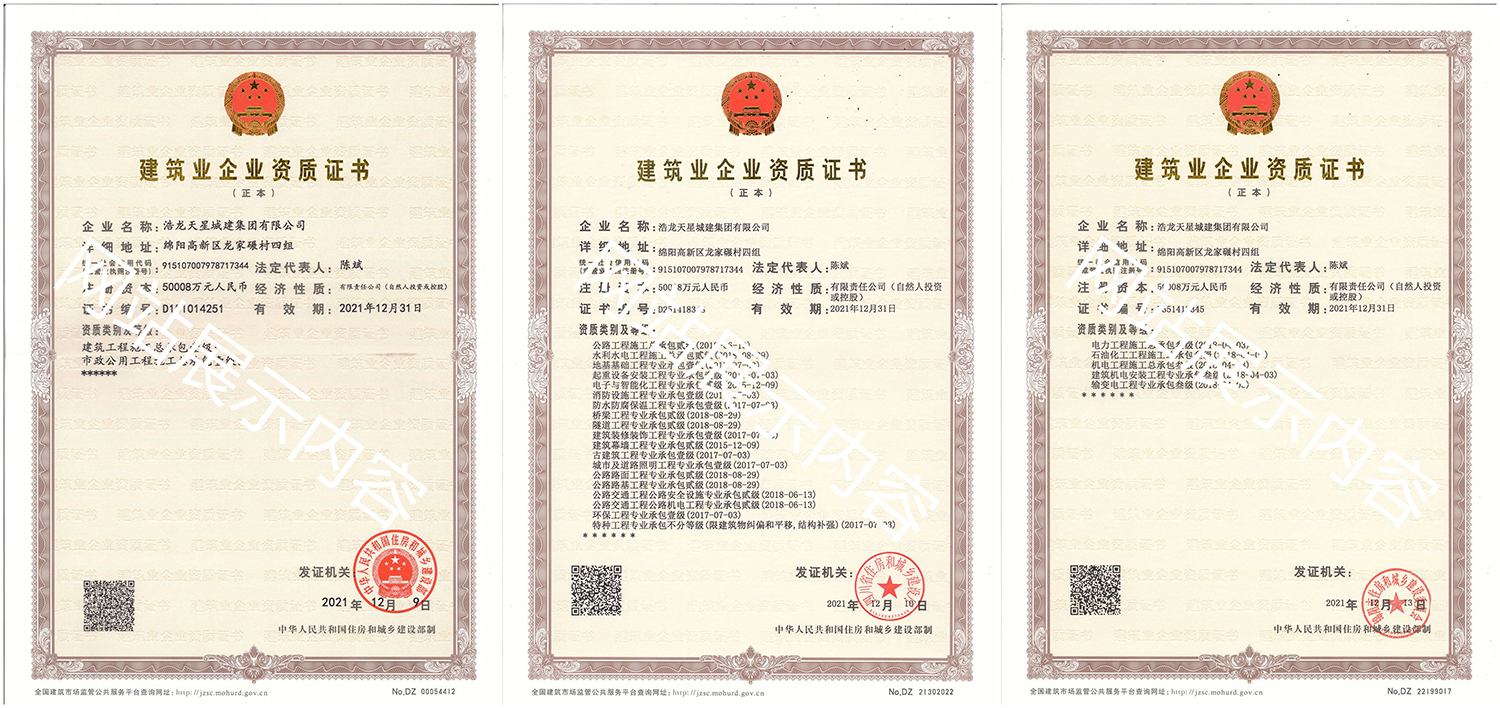 浩龍?zhí)煨浅墙瘓F有限公司,2007年成立于“李白故鄉(xiāng)、中國科技城”—四川省綿陽市,企業(yè)注冊資本金5.0008億元。公司共有27項建筑業(yè)企業(yè)資質,其中國家一級資質11項,二級資質10項,三級資質5項,特種資質不分等級1項,類別涵蓋建筑、市政、水利、機電、隧道、起重設備安裝等基礎及未來發(fā)展重點專業(yè)。公司下設三個辦事處,業(yè)務范圍輻射全國,在建項目三十余個,累計完成產值超11億元。公司是綿陽市建筑施工企業(yè)協會副會長單位、綿陽遂寧商會會長級單位、綿陽首批建筑業(yè)綠卡企業(yè),在綿陽本地企業(yè)中綜合實力名列前茅。